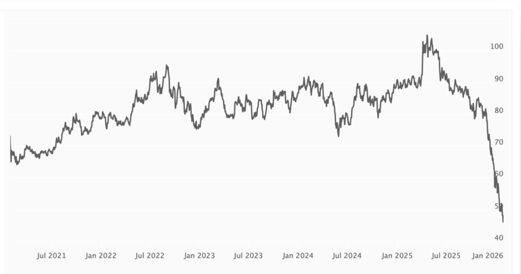 | Recent ratio levels | – | Approximately 46:1 to 47:1 as of late January 2026 |