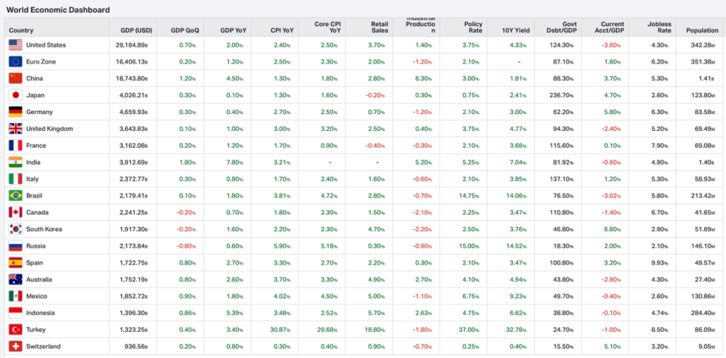 The following table lists the latest key macroeconomic indicators across major economies (as of 07 April 2026).