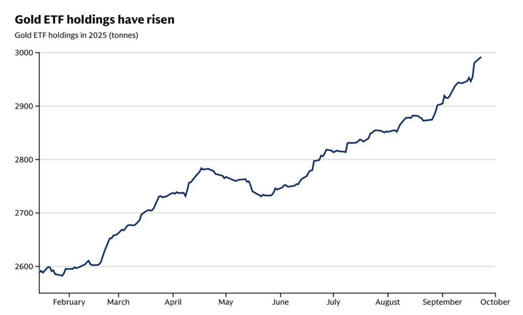 The following graph highlights the pattern of Gold ETF holdings during 2025, which was a major contributor to the gold price upside.
